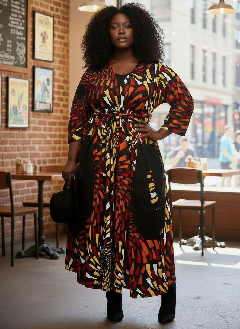 Just Call Me Different is the perfect addition to your wardrobe. With bold print and bold colors, this midi dress is sure to make a statement. The one size fits most feature ensures a perfect fit for everyone while the great material ensures both comfort and style. Make a fashion statement with this belted dress.