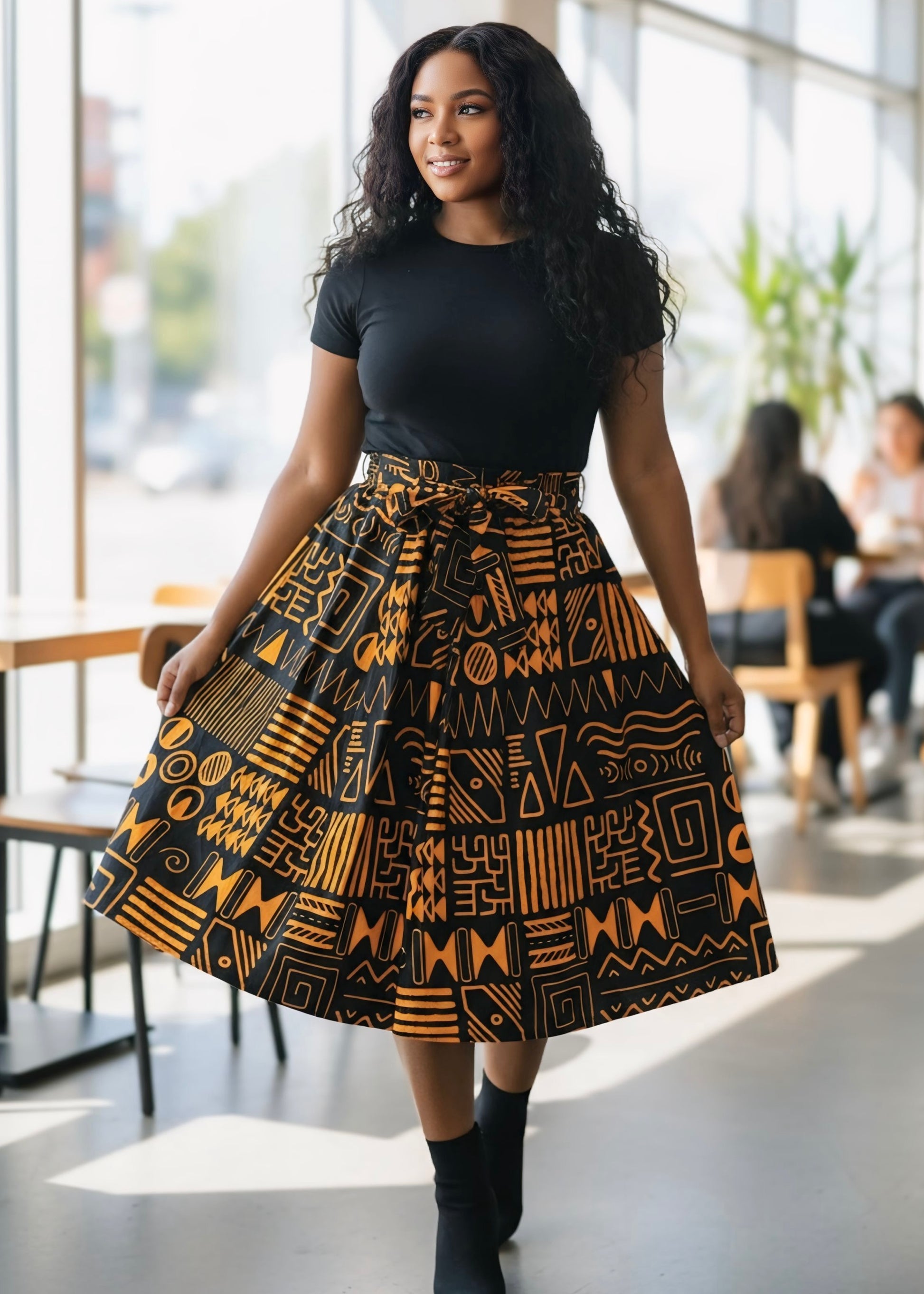 Expertly designed for comfort and style, My Tribe's tribal print midi skirt is perfect for any occasion. Made with high-quality materials, this one size fits most skirt boasts convenient pockets and an attached belt.